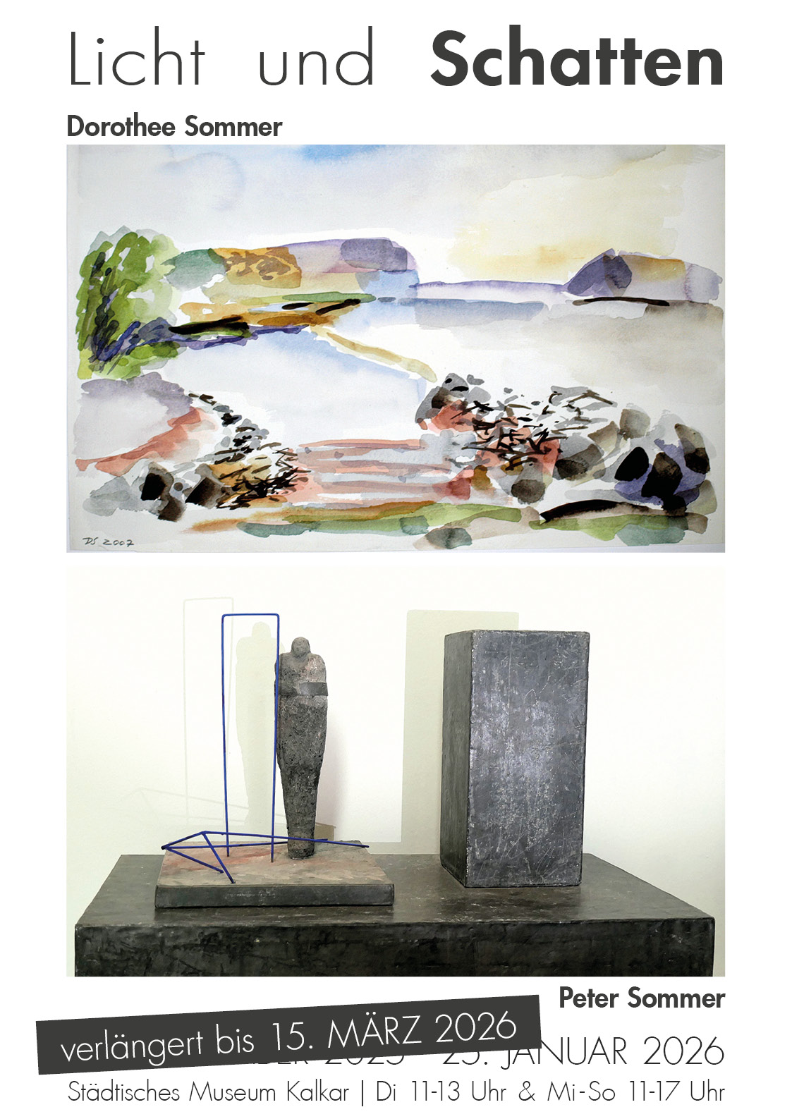 Ausstellung mit Aquarellmalerei von Dorothee Sommer und plastischen Arbeiten von Peter Sommer. Verlängert bis 15. März!