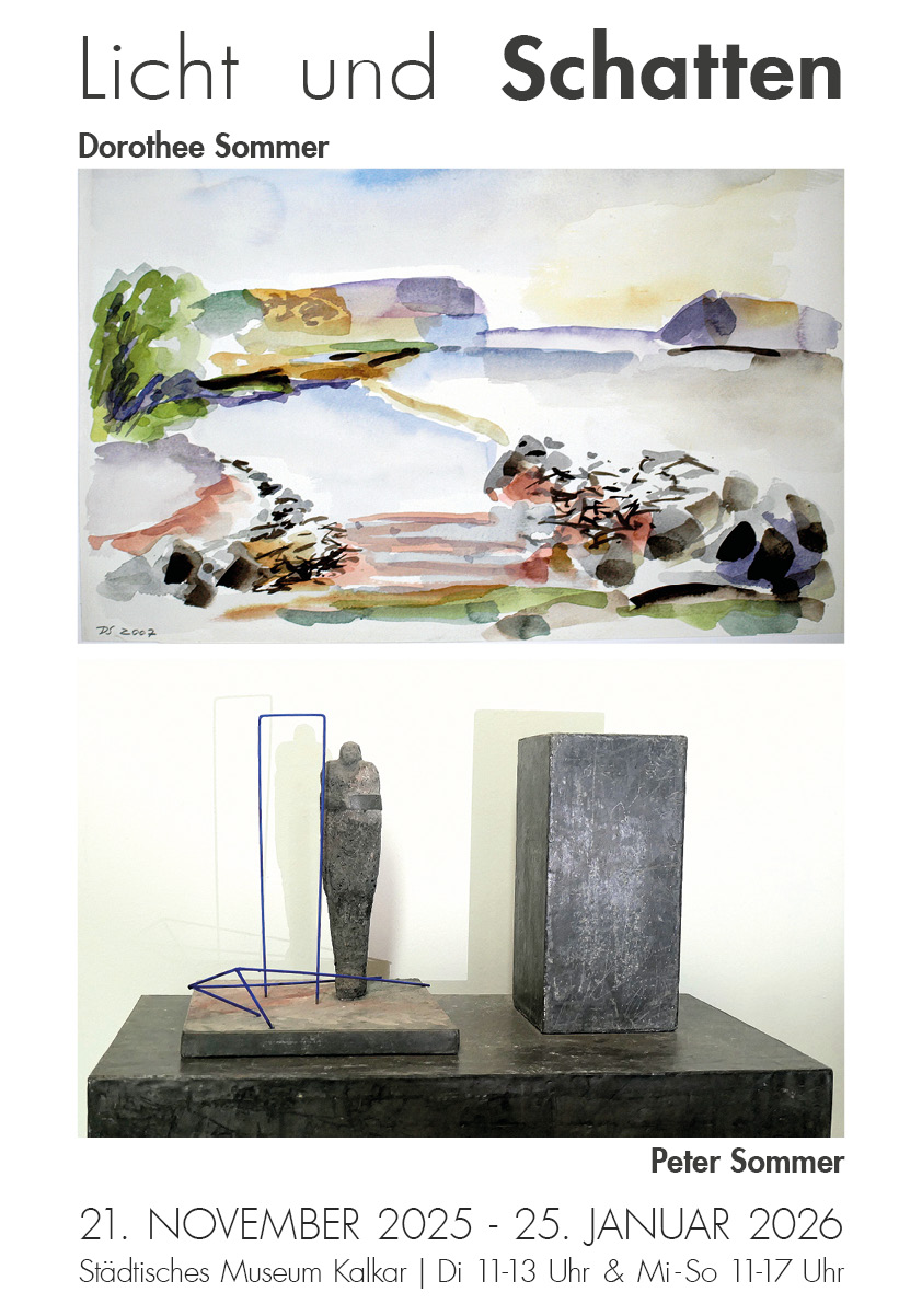 Dorothee Sommer, ehemals in der ästhetischen Erziehung tätig, konzentriert sich auf die Aquarellmalerei. Ihre ca. 20 ausgestellten Bilder sind in früheren Jahren entstanden, aber auch aktuell in Grieth, jeweils unmittelbar vor der Natur.
